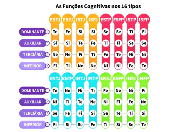Acima possui uma tabela com a ordem das funções para você ver qual é seu MBTI após finalizar o teste: